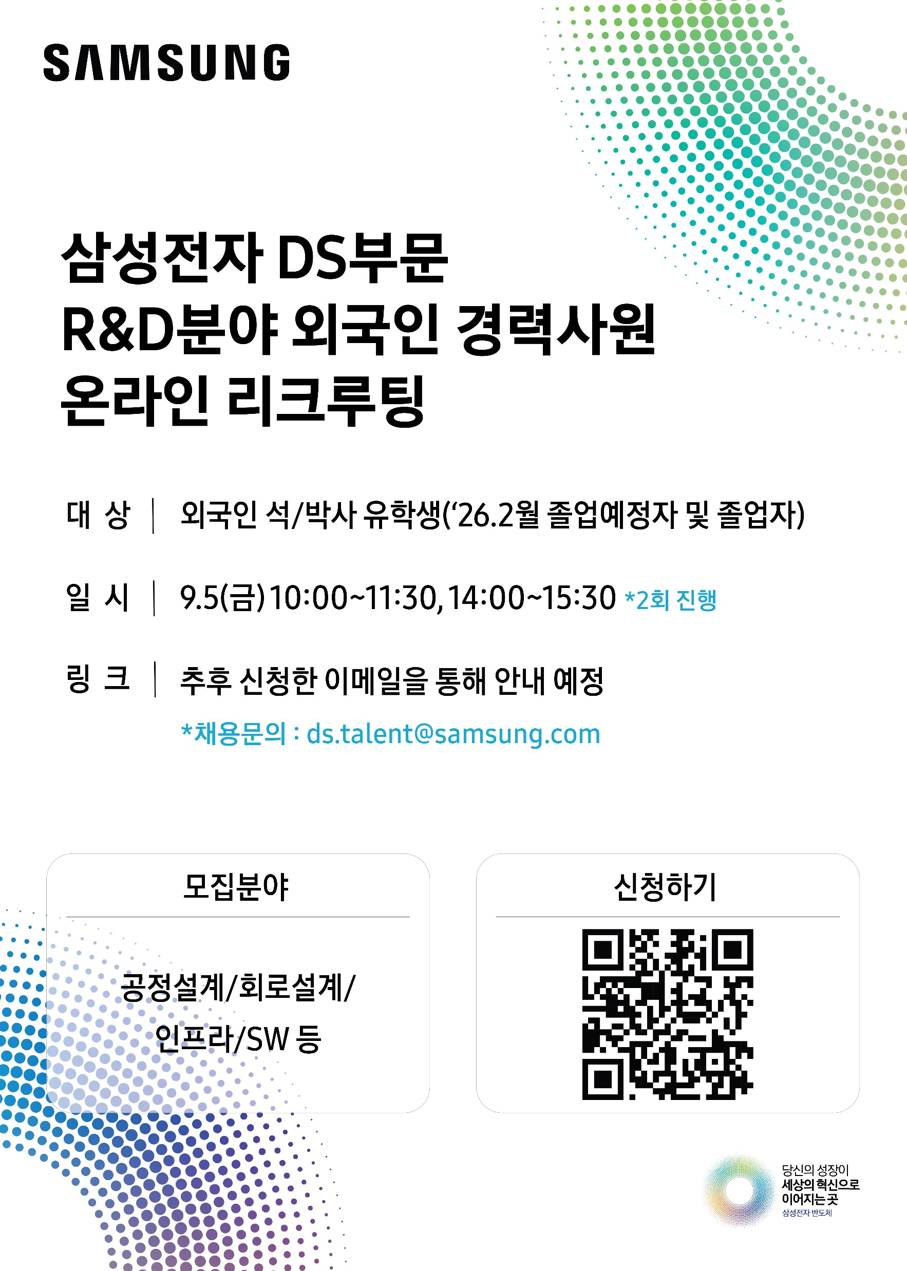 참가신청 완료자를 대상으로 삼성전자에서 개별 안내